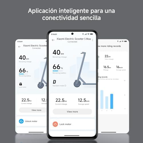 10 valoraciones en Xiaomi Electric Scooter 5 Pro ES+Speaker – Potencia máxima de 1000 W – 400 W, Autonomía de 60 km, Sistema de Doble suspensión, Pantalla LED Multifuncional (Versión ES) Amazon.es: Deportes y aire libre