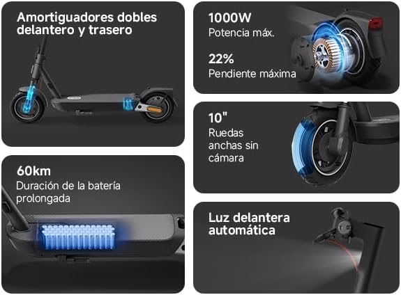 Xiaomi Electric Scooter 5 Pro ES+Speaker – Potencia máxima de 1000 W – 400 W, Autonomía de 60 km, Sistema de Doble suspensión, Pantalla LED Multifuncional (Versión ES) Amazon.es: Deportes y aire libre